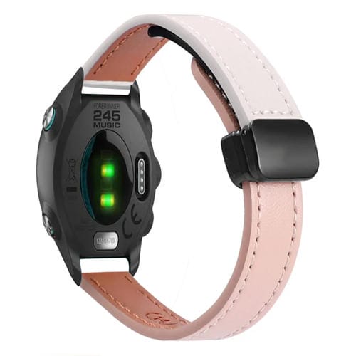 Correa de Reloj Cuero Microfibra 20mm con Hebilla Magnética para Garmin Forerunner 245 Music (Rosa y Albaricoque)