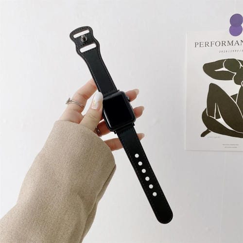 Correa de Reloj de Cuero Retro para Apple Watch Series 8 7 6 5 4 3 2 1 (Negro)