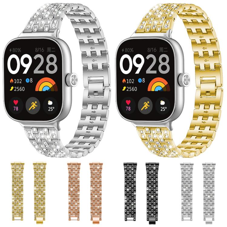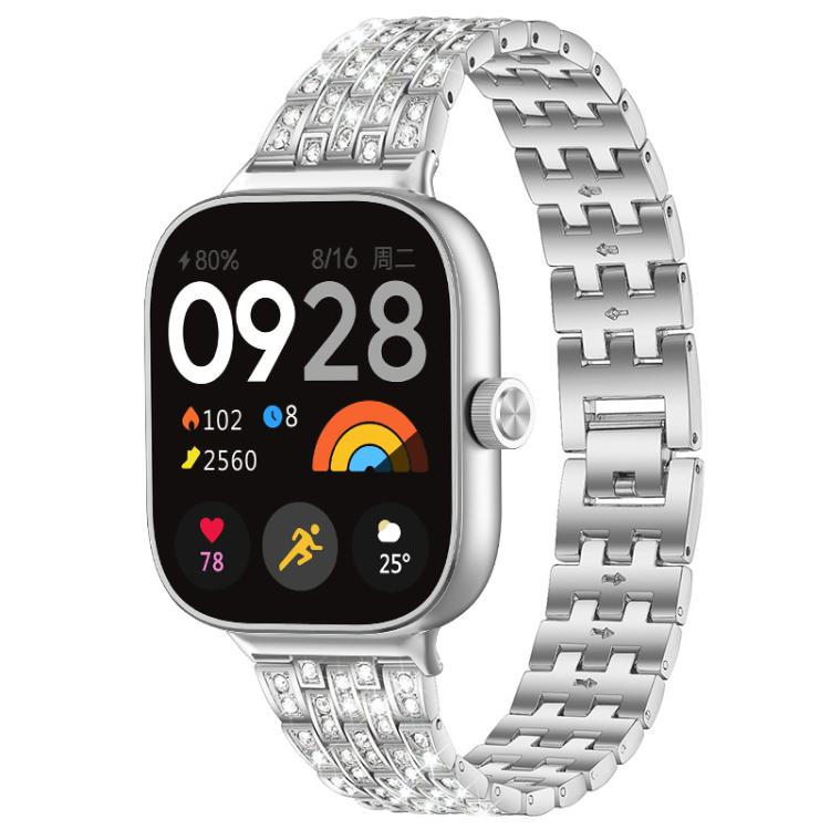Correa de reloj metálica con cinco cuentas y diamantes xDfind para Xiaomi Band 9 Pro/8 Pro/Redmi Watch 6/5/4 (plateada)