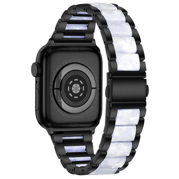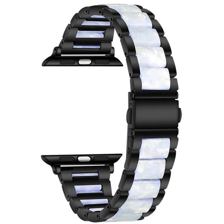 Correa de resina metálica de tres cuentas para Apple Watch 38/40/41/S10 de 42 mm (negro y blanco)