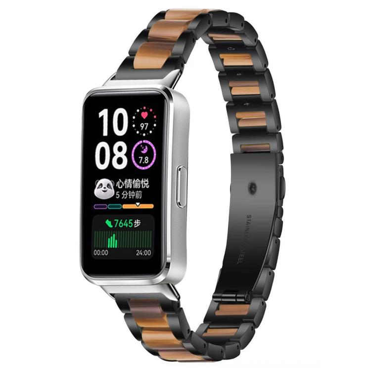 Correa de resina metálica de tres cuentas xDfind para Huawei Band 10/9/8 (negro y marrón)