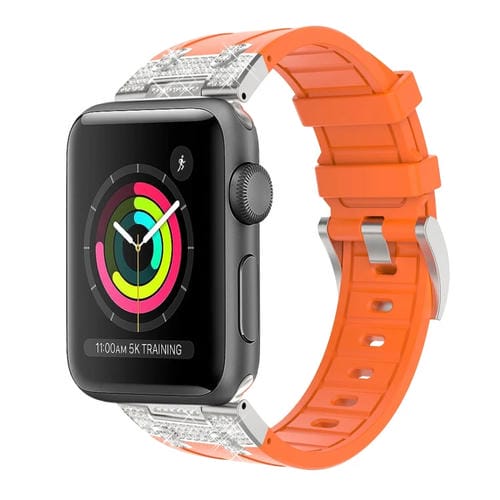 Correa de Silicona Apple Watch Series 3 42mm Diseño Cielo Estrellado y Diamantes (Naranja)