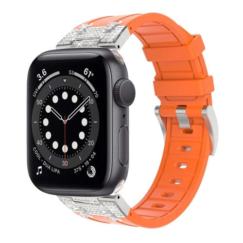 Correa de Silicona para Apple Watch Series 6 44mm con Diseño Cielo Estrellado y Diamantes (Naranja)