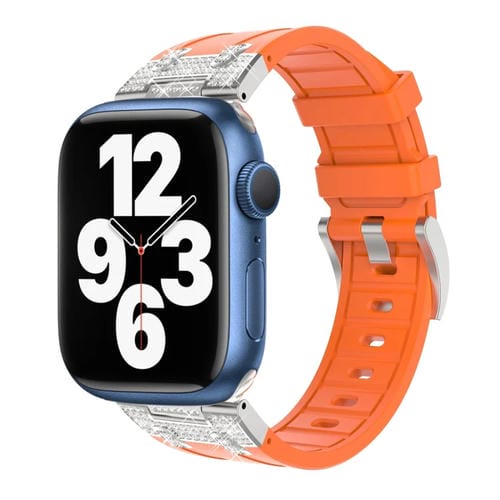 Correa de Silicona Apple Watch Series 7 45mm Diseño Cielo Estrellado y Diamantes (Naranja)