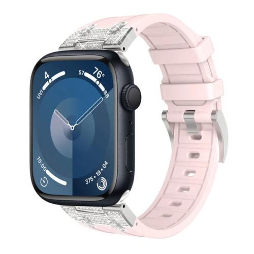 Correa de Silicona para Apple Watch Series 9 45mm con Diseño Cielo Estrellado y Diamantes (Rosa)
