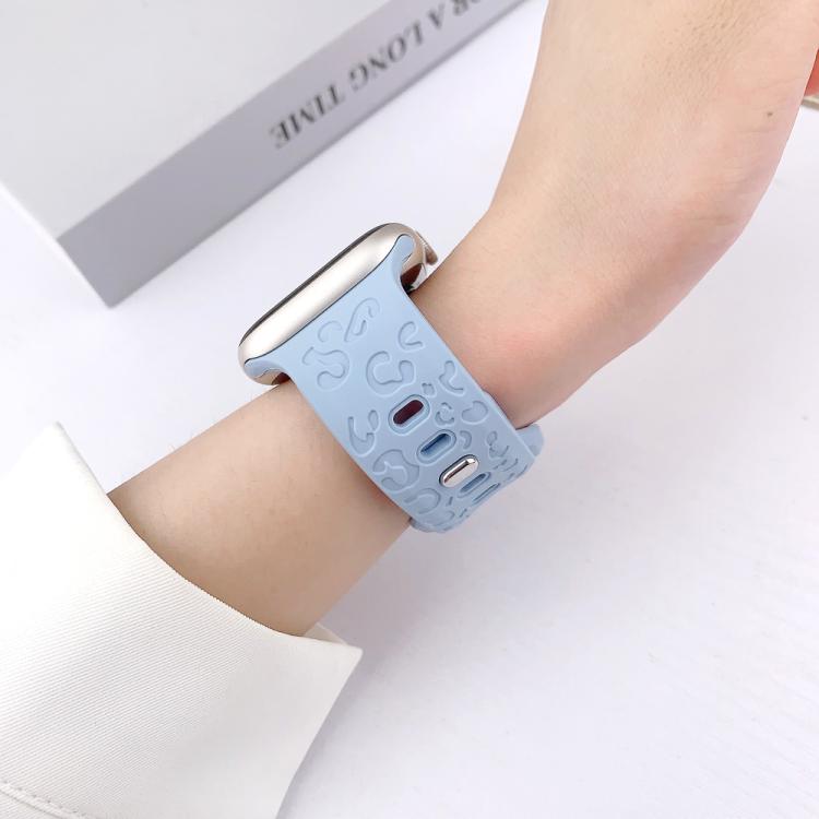 Correa de silicona con hebilla cóncava de leopardo para Apple Watch de 42 mm, 41 mm, 40 mm y 38 mm (azul claro)