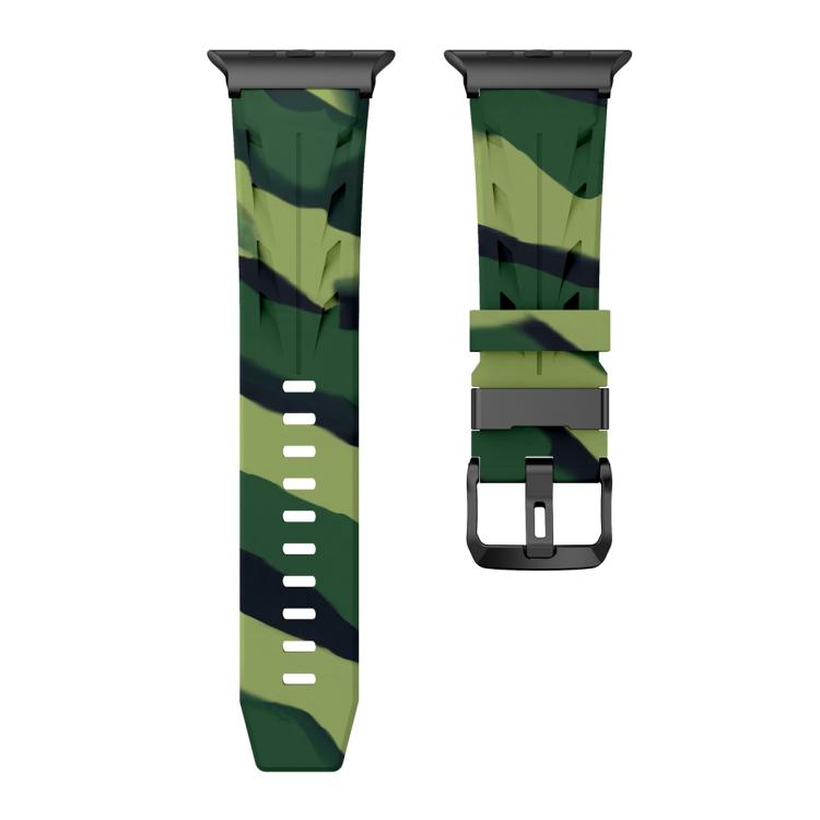 Correa de silicona con hebilla de pasador negra para Apple Watch de 42 mm / 41 mm / 40 mm / 38 mm (camuflaje verde militar)