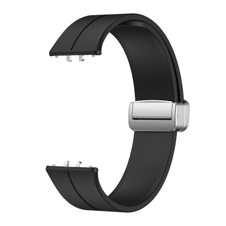 Correa de silicona con hebilla plateada y cierre magnético para Samsung Galaxy Fit 3 (negra)