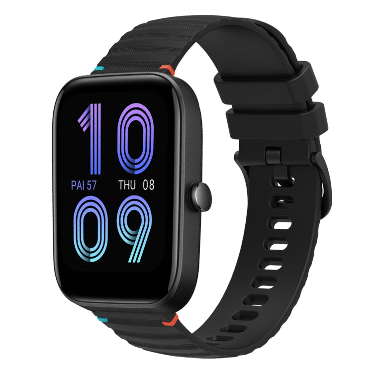 Correa de Silicona para Reloj Amazfit Bip 3 20mm con Puntadas Onduladas y Puntos (Negra)
