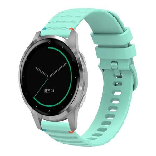Correa de Silicona para Reloj Garmin Active S 18mm con Puntadas Onduladas y Puntos (Verde Azulado)