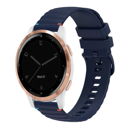 Correa de Silicona para Reloj Garmin Vivoactive 4S 18mm con Puntadas Onduladas y Puntos (Azul Marino)