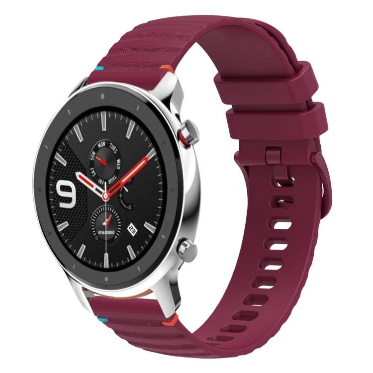 Correa de Silicona 22mm para Reloj Amazfit GTR 4 con Puntadas Onduladas y Puntos (Rojo Vino)