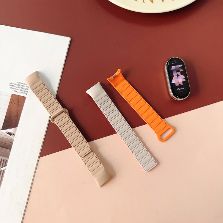 Correa de silicona magnética de tres cuentas para Xiaomi Smart Band 10/9/8 (negro y naranja)
