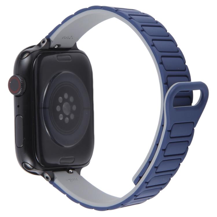 Correa de silicona magnética delgada en forma de I para Apple Watch de 42 mm, 41 mm, 40 mm y 38 mm (negro y gris azulado oscuro)