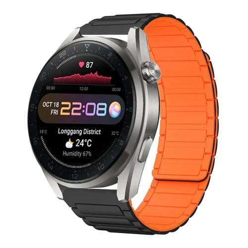Correa de Silicona Magnética 22mm para Huawei Watch 3 Pro (Negra y Naranja)
