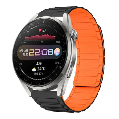 Pour Huawei Watch 3 Pro 22 mm Bracelet de montre en silicone magnétique en forme de I (noir + orange)