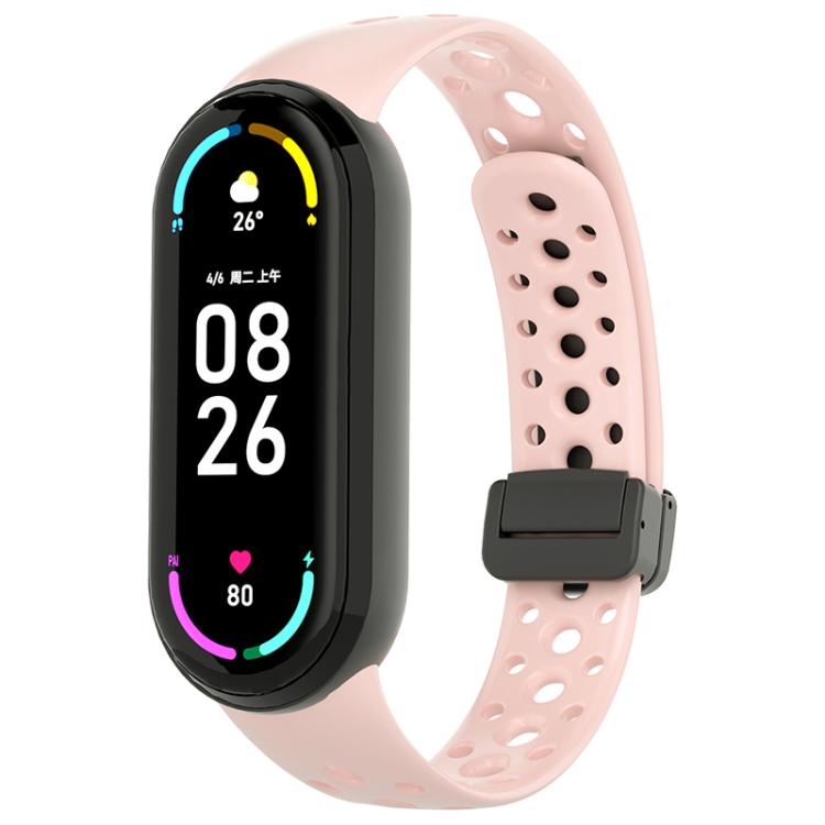 Correa de silicona magnética negra con hebilla para Xiaomi Smart Band de 10/9/8 agujeros (rosa)
