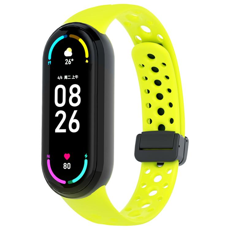 Correa de silicona magnética negra con hebilla para Xiaomi Smart Band de 10/9/8 agujeros (verde fluorescente)