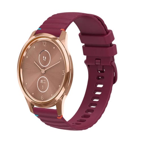Correa de Silicona para Reloj Garmin Vivomove Luxe de 20mm con Puntadas Onduladas y Puntos (Rojo Vino)