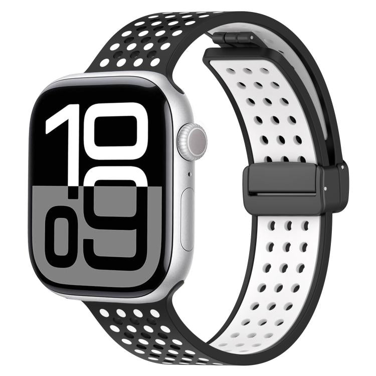 Correa de silicona transpirable con hebilla magnética para Apple Watch de 42 mm, 41 mm, 40 mm y 38 mm (negro y blanco)