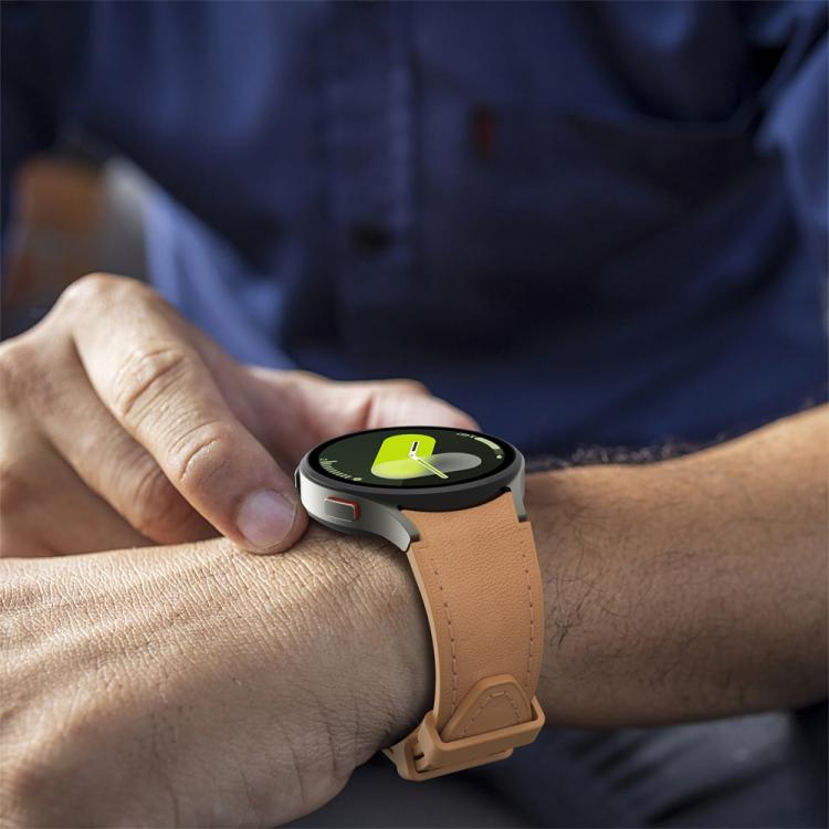 Correa de silicona y cuero con hebilla plateada para Samsung Galaxy Watch 7/6/5/4 (marrón claro)