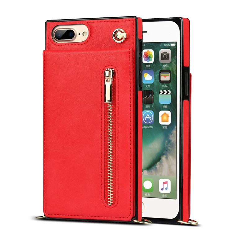 Funda Trasera TPU + PU con Cremallera Cruzada, Soporte, Ranuras y Correa para iPhone 8 Plus / 7 Plus (Rojo)