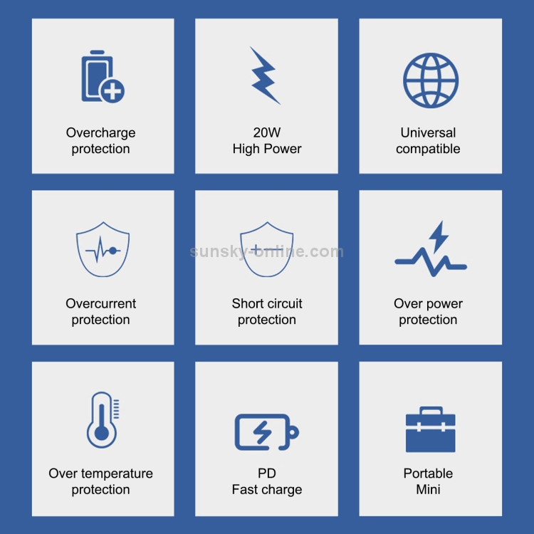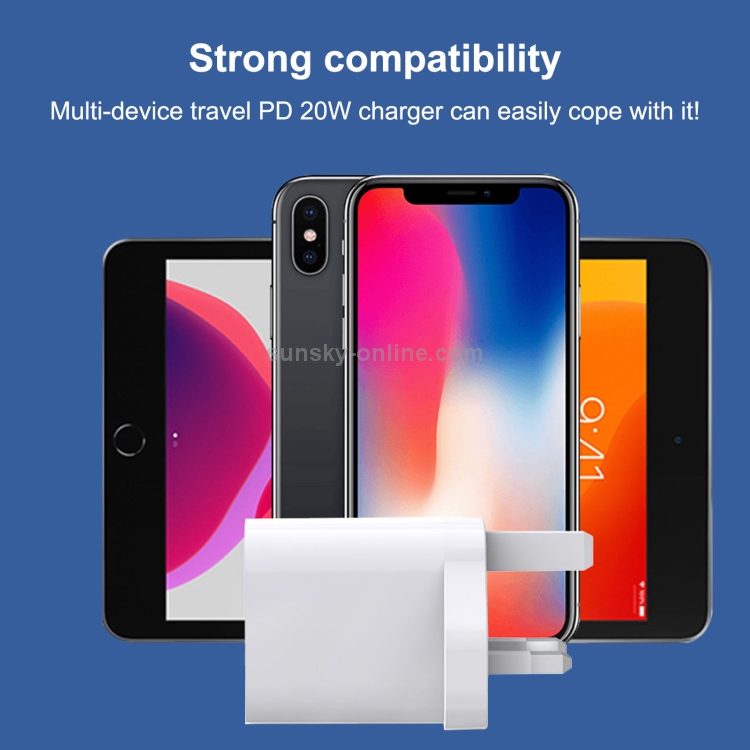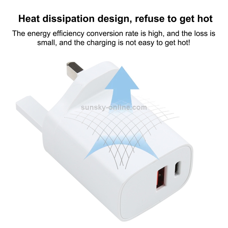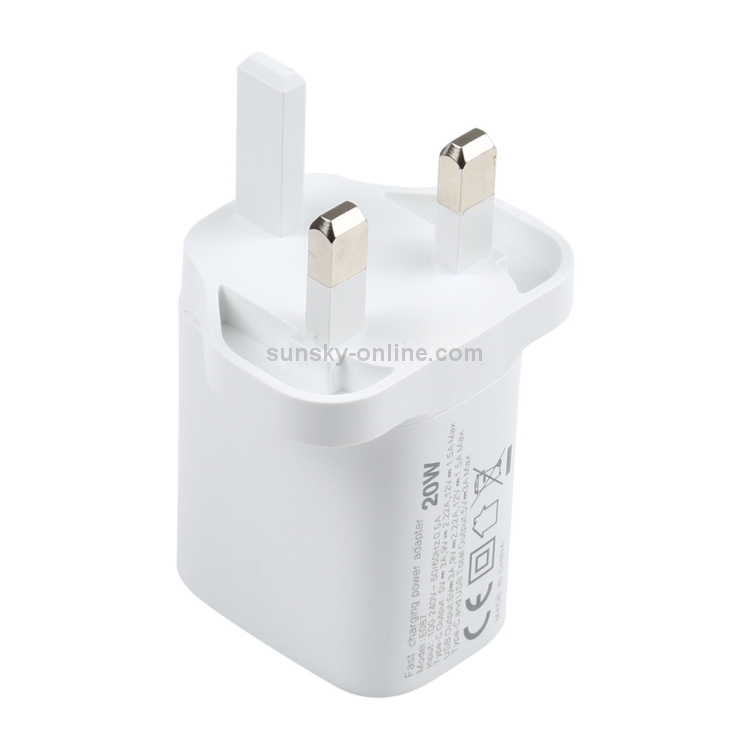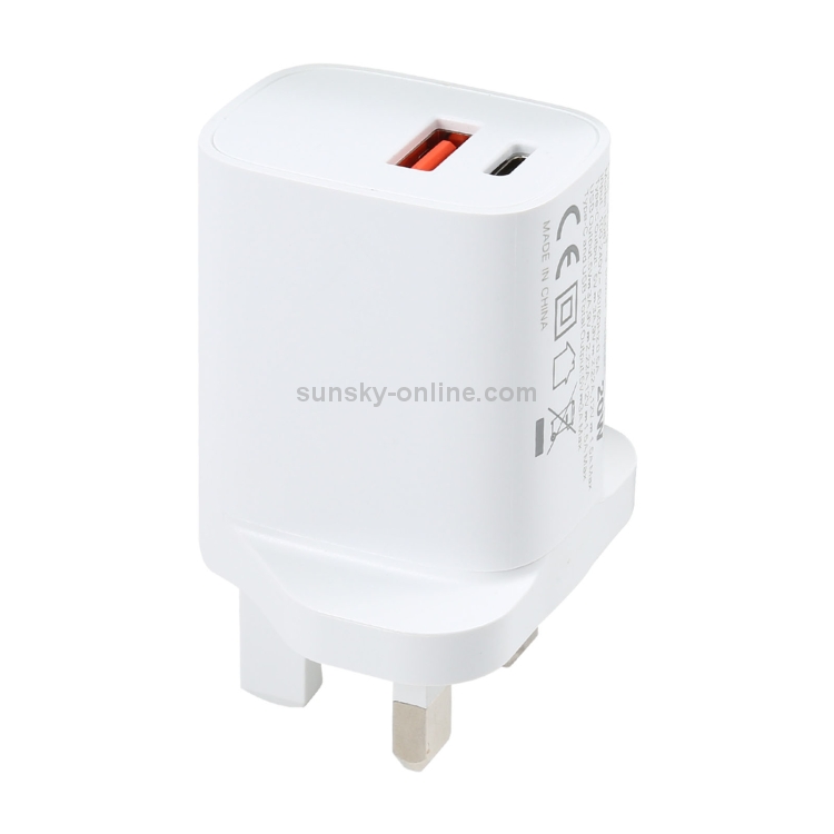Cargador de viaje E087 20W USB-C y USB carga rápida (Reino Unido)
