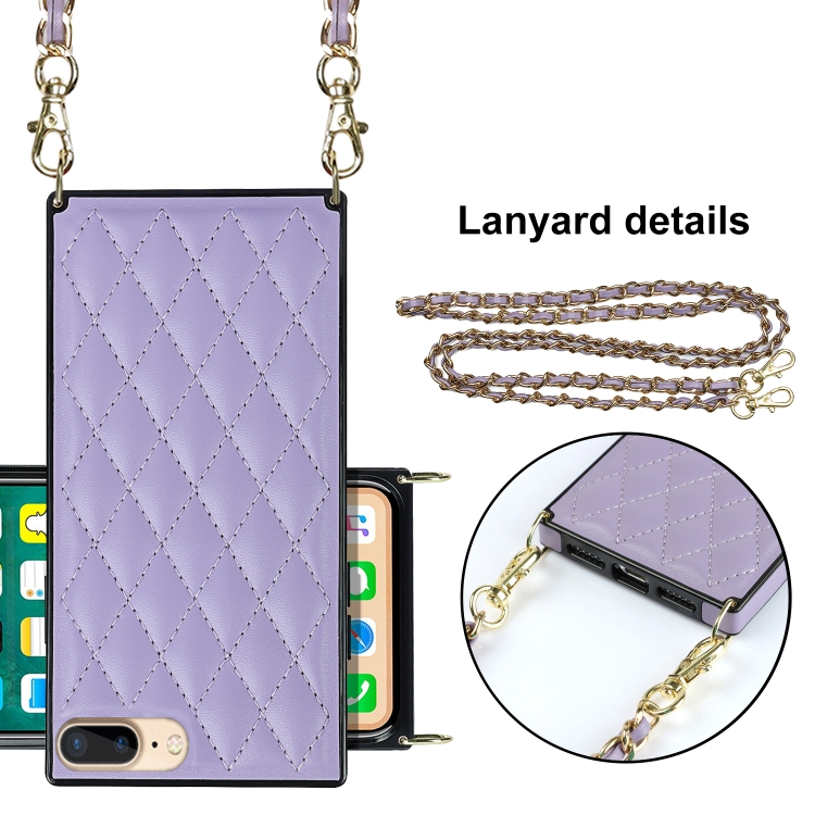 Funda para iPhone 8 Plus y 7 Plus Cuero Microfibra Patrón Rombico Caja TPU Correa Cruz (Púrpura)