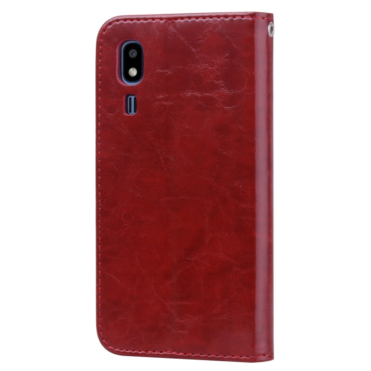 Estuche de Cuero Galaxy A2 Core con Tapa Horizontal Soporte y Ranuras para Tarjetas (Rojo)