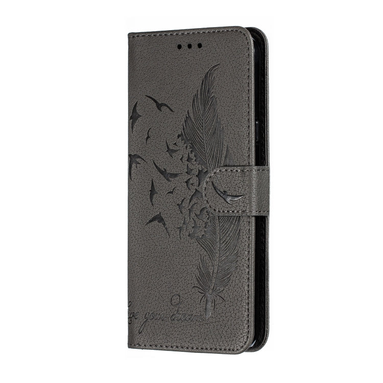 Estuche de Cuero LG Stylo 5 con Tapa Horizontal, Textura Litchi, Billetera y Soporte (Gris)
