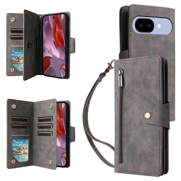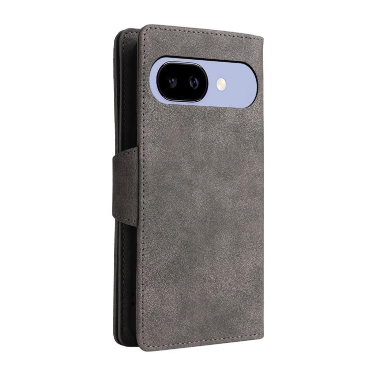 Estuche de Cuero con Tres Pliegues y Hebilla de Remache para Google Pixel 9A (Gris)
