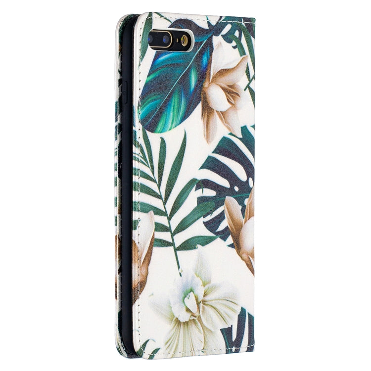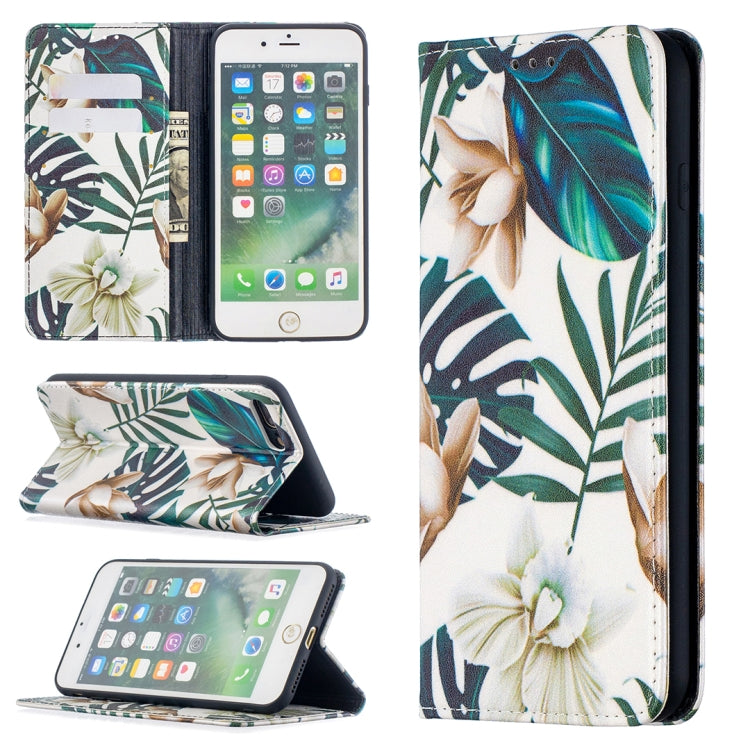 Estuche de Cuero de Pu iPhone 8 Plus y 7 Plus Tapa Horizontal Magnética Soporte Ranuras Tarjetas (Hojas Rojas)