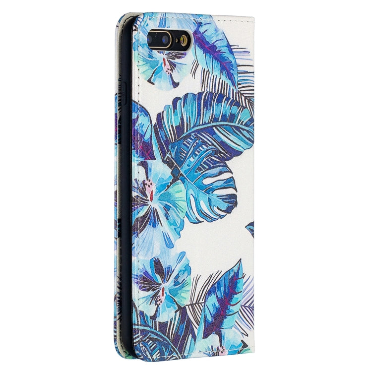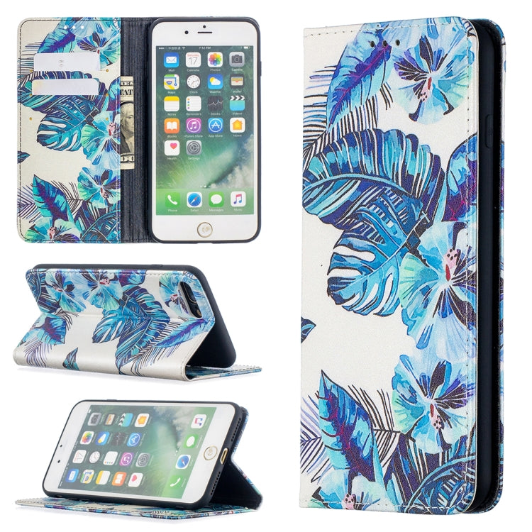 Estuche de Cuero Pu para iPhone 8 Plus y 7 Plus con Tapa Horizontal Magnética Invisible Soporte Ranuras y Billetera (Hojas Azules)