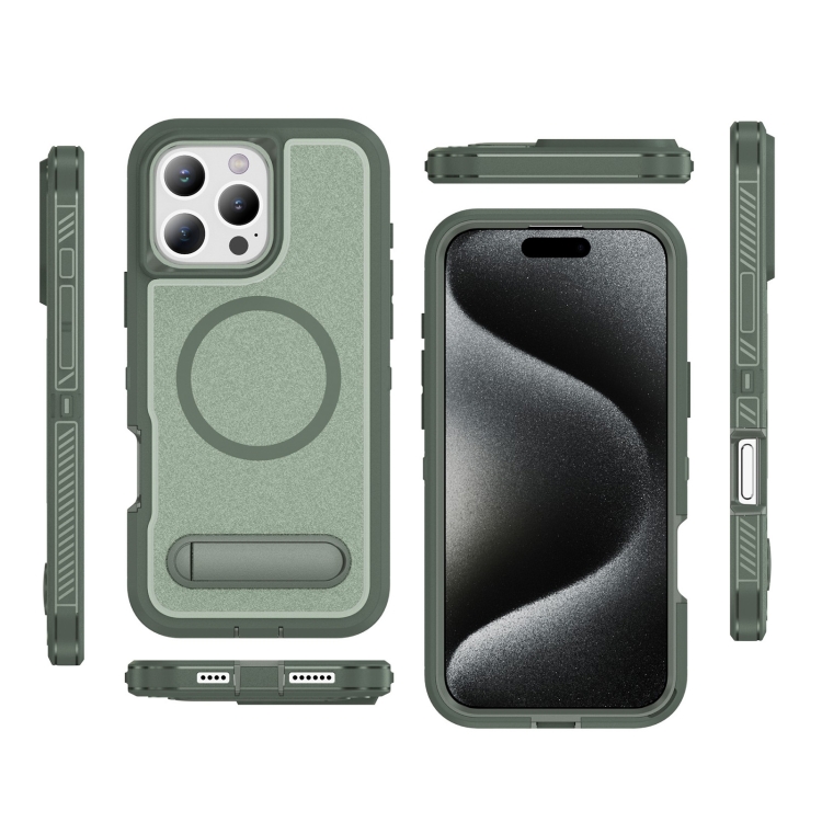 Estuche Híbrido TPU y PC con Soporte Magsafe para iPhone 16 Pro Max (Verde)