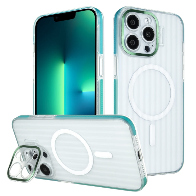 Estuche Magnético para Teléfono Magsafe con Soporte para Lente de Borde de Color para iPhone 13 Pro Max (Azul)