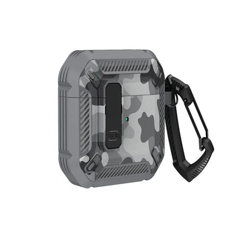 Estuche para Auriculares Airpods 1/2 Impreso Dos Tonos con Interruptor de Bloqueo y Mosquetón (Gris + Gris Camuflaje)