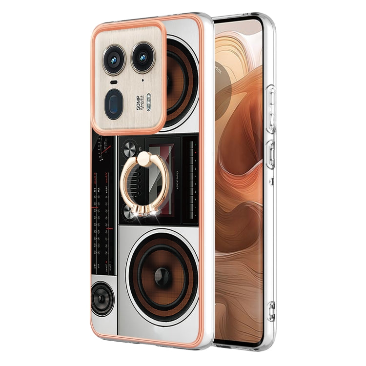 Estuche teléfono Motorola Edge 50 Ultra con Galvanoplastia Imd doble cara y soporte anillo (Radio Retro)