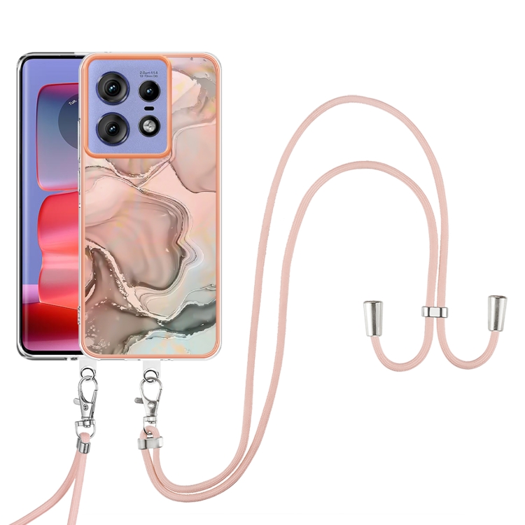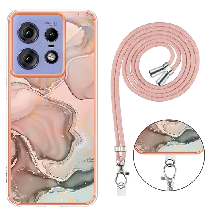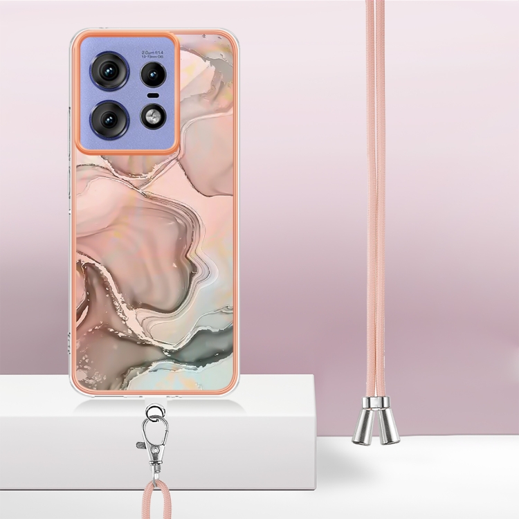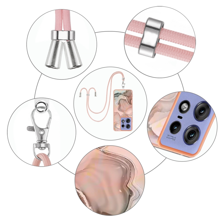 Estuche para Motorola Edge 50 Pro con IMD doble cara y Galvanoplastia Mármol (Oro Rosa) con Cordón