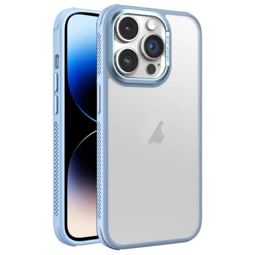 Estuche para Teléfono iPhone 14 Pro Max Marco de Lente Metal Esmerilado Sensación de Piel Enfriamiento Lateral (Azul Cielo)