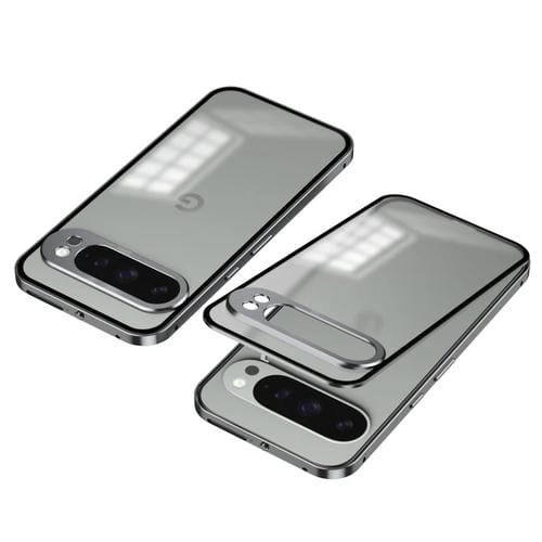 Estuche para Teléfono Google Pixel 9 Pro XL con Marco de Metal Esmerilado y Hebilla a Presión (Gris)