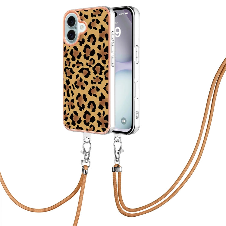 Estuche para teléfono Imd doble cara con galvanoplastia y cordón para iPhone 16 (Estampado de leopardo)