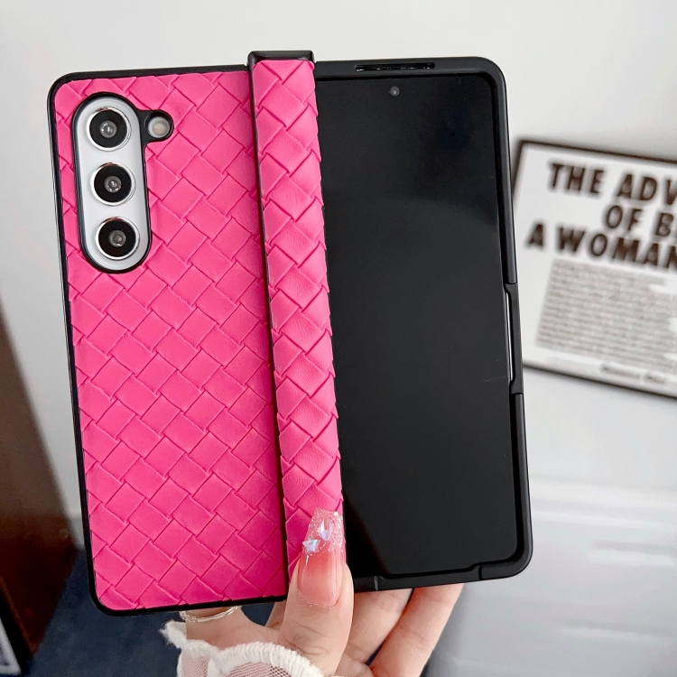 Estuche plegable para Samsung Galaxy Z Fold PU textura tejida juego 3 piezas (Rosa y Rojo)
