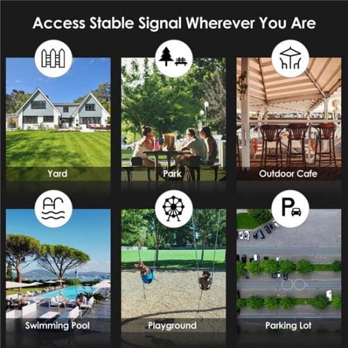 • Amplía la cobertura WiFi en exteriores con señal potente y estable