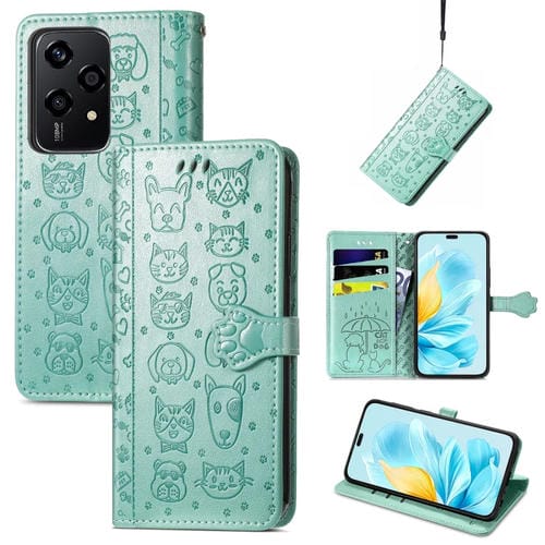 Funda de Cuero For Honor 200 Lite con Relieve para Perros y Gatos (Verde)