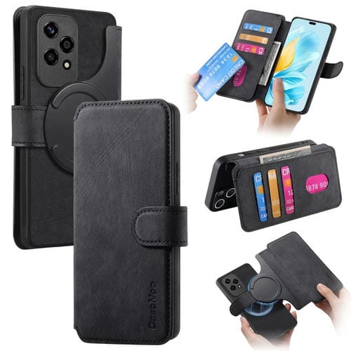 Funda de Cuero For Honor 200 Lite Global Caseneo Magsafe Rfid Antirrobo para Teléfono (Negro)