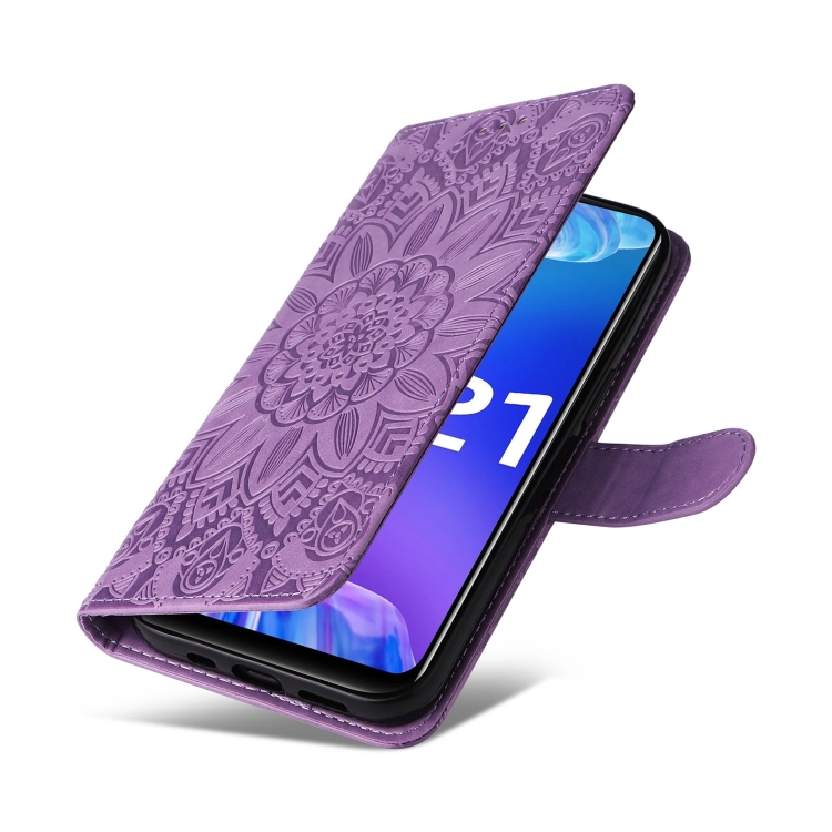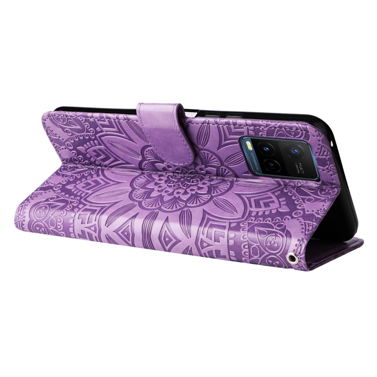 For Vivo Y21 2021 / Y21S / Y33S Embossed Sunflower Leather Phone Case(Purple)