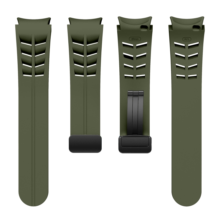 Correa de Silicona Fou para Samsung Galaxy Watch 4 40/44mm con Hebilla Negra Plegable Magnética (Verde Militar)
