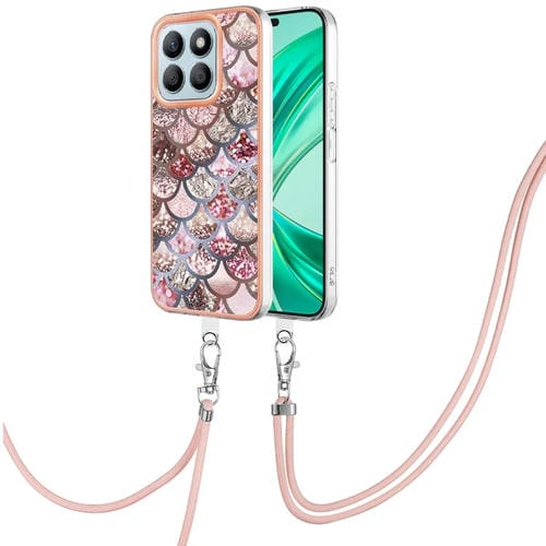 Funda TPU a Prueba de Golpes con Patrón Galvanoplastia Imd y Cordón para Honor X8B (Escamas Rosas)