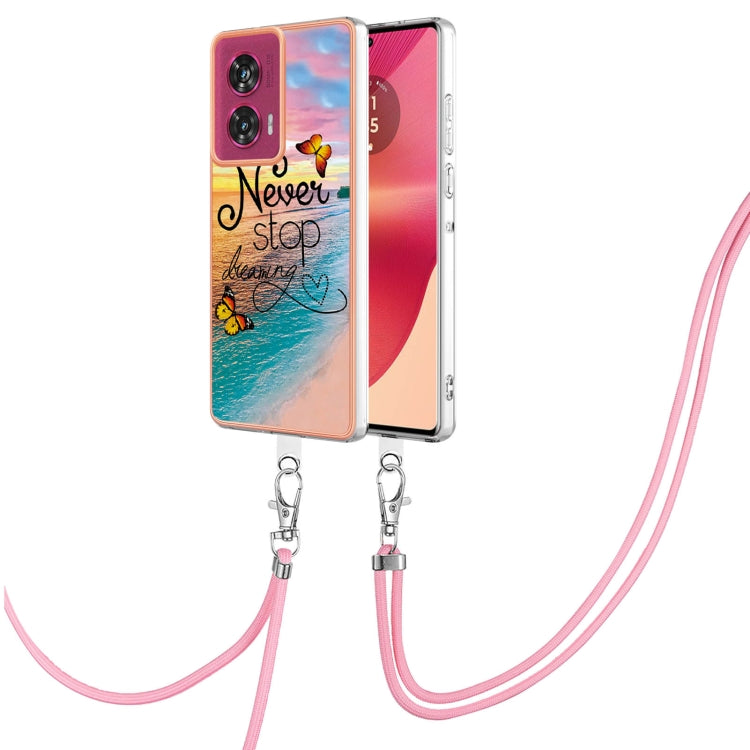 Funda TPU a Prueba de Golpes con Patrón Galvanoplastia IMD para Motorola Edge 50 Fusion con Cordón (Mariposa Persiguiendo Sueños)