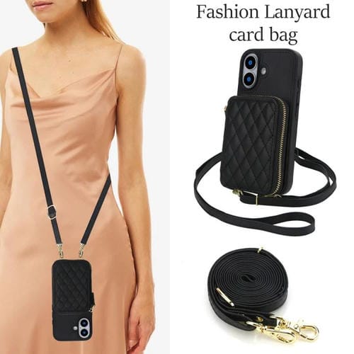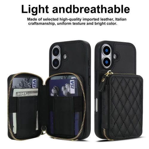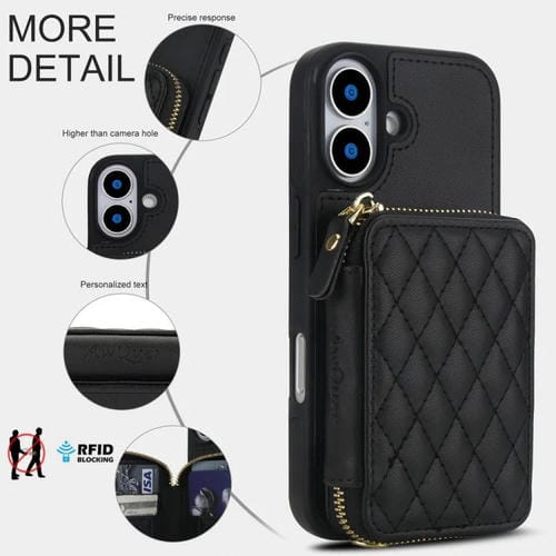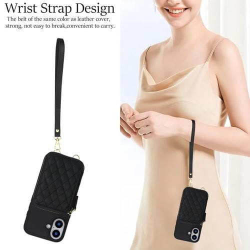 Funda AwQuer con cierre cruzado y parte trasera de cuero con diseño rómbico para iPhone 17 (negra)
